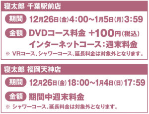 年末年始特別料金実施のお知らせ